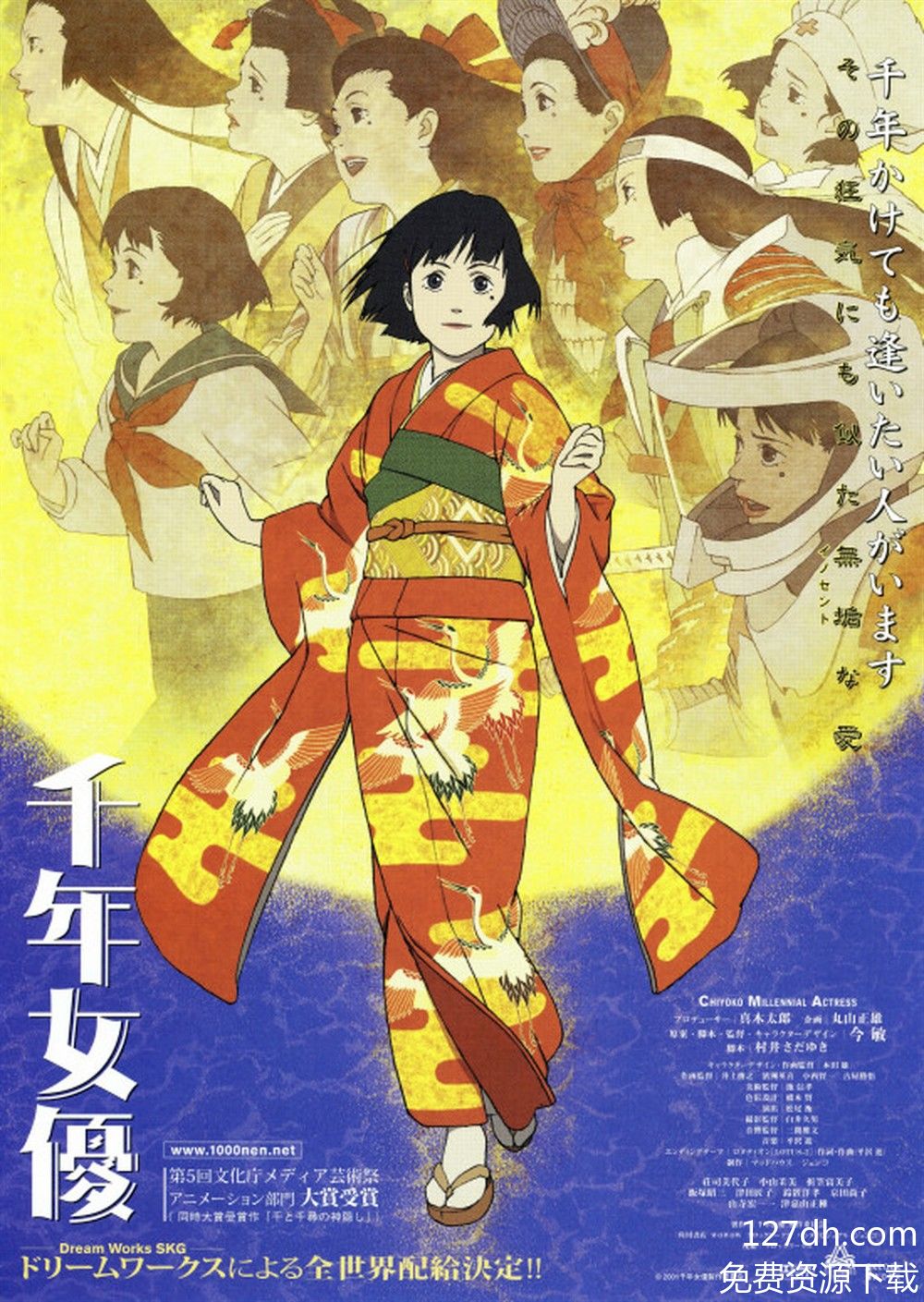 “《千年女优2001》是日本动画大师今敏2001年的经典之作,以时空交错的叙事,把女演员藤原千代子跨越半个世纪的执着,织成了一场藏在光影里的追逐。纪录片导演立花源也带着老胶片找到隐居的千代子,老人指尖抚过泛黄的剧照,记忆突然撞开缺口:16岁的她在战火中藏起反战青年键之介,两人躲在阁楼里,用铅笔在烟盒上画下北海道的薰衣草田,约定“战后就在这里见”。为了让键之介能看到自己,千代子阴差阳错进了演艺圈——从默片时代梳着发髻的武士少女,到战后穿和服的艺伎,再到昭和后期裹着科幻戏服的女主角,她每一次在镜头前奔跑、转身、等待,都是在复刻当年对约定的执念。镜头在现实的采访室和千代子的回忆、演艺片段间跳切:她穿着古装跑过片场的石板路,转眼脚下变成战后的水泥地,再晃神已踩在未来感的台阶上,可手里始终攥着那个画着薰衣草的烟盒。直到晚年,千代子坐在轮椅上,望着窗外的雪,笑着说“我还在等他”——她等的或许不是那个消失在时代里的青年,而是那个曾为一句约定,敢闯向未知的自己。”