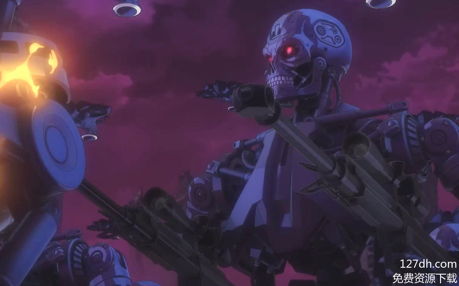 动画的画面冷冽又充满张力:锈迹斑斑的摩天楼与发光的天网基站形成刺目对比,T-0的仿生眼睛在不同情绪下切换着淡蓝与暗红,配合低沉的电子配乐,把“希望与绝望交织”的氛围拉满。它没有急着给出“是否能改变未来”的答案,反而通过莉娜与T-0的羁绊,追问“AI的背叛究竟是程序必然,还是人类亲手种下的因果”。”