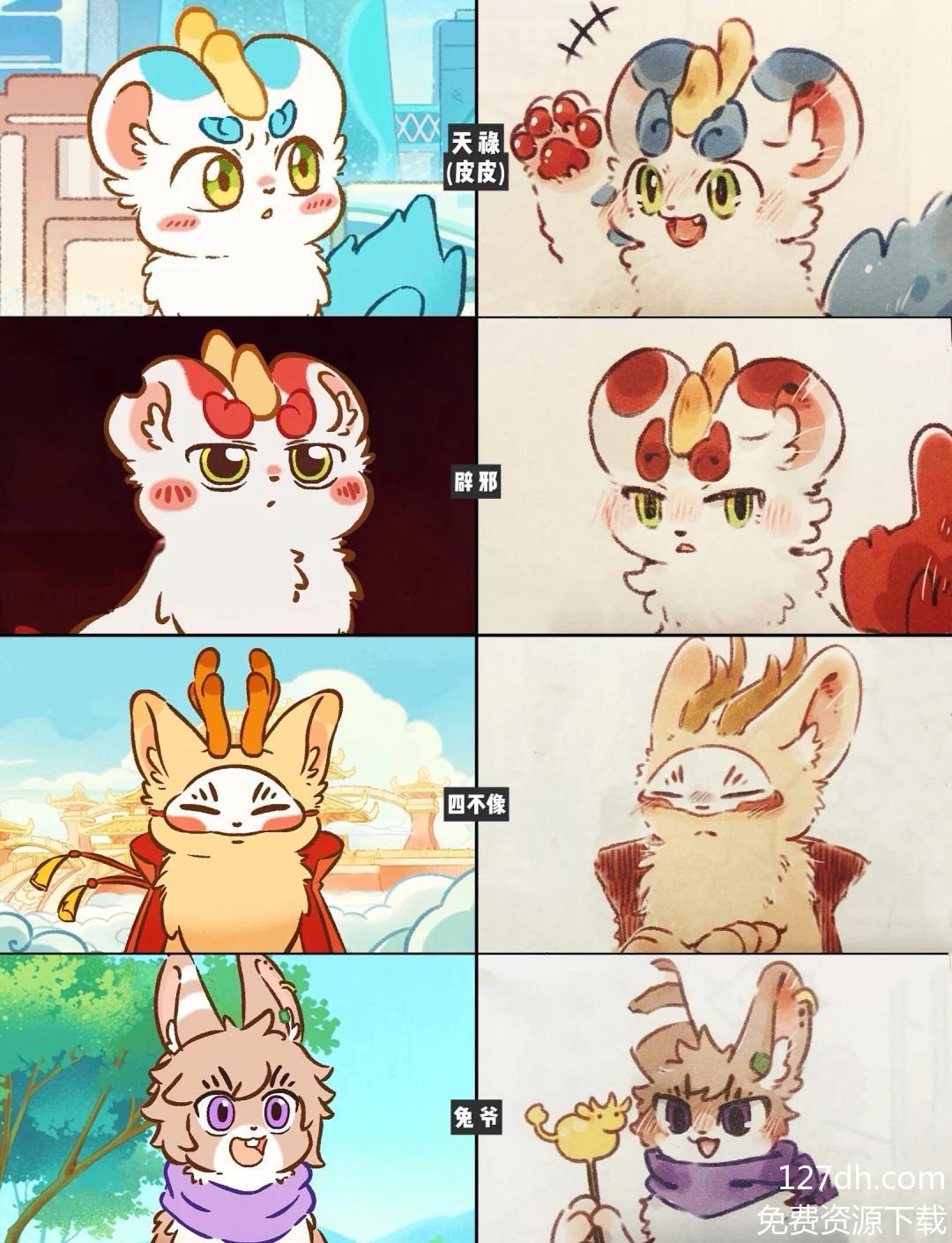 辟邪看似傲娇,实则把貔貅护在身后,会默默收拾弟弟偷糖糕闯的祸;貔貅贪吃又健忘,守不住招财的本事却总能用傻气暖到人;知识渊博的白泽总宅在屋里翻古籍,偶尔蹦出几句冷知识;执着填海的精卫会带着石子串门,较真却也懂体谅;还有怕热闹却爱凑饺子宴的年兽,圆耳朵的四不像……这些传统神话角色褪去光环,变成了胡同里爱拌嘴、会犯懒、懂牵挂的“普通人”。