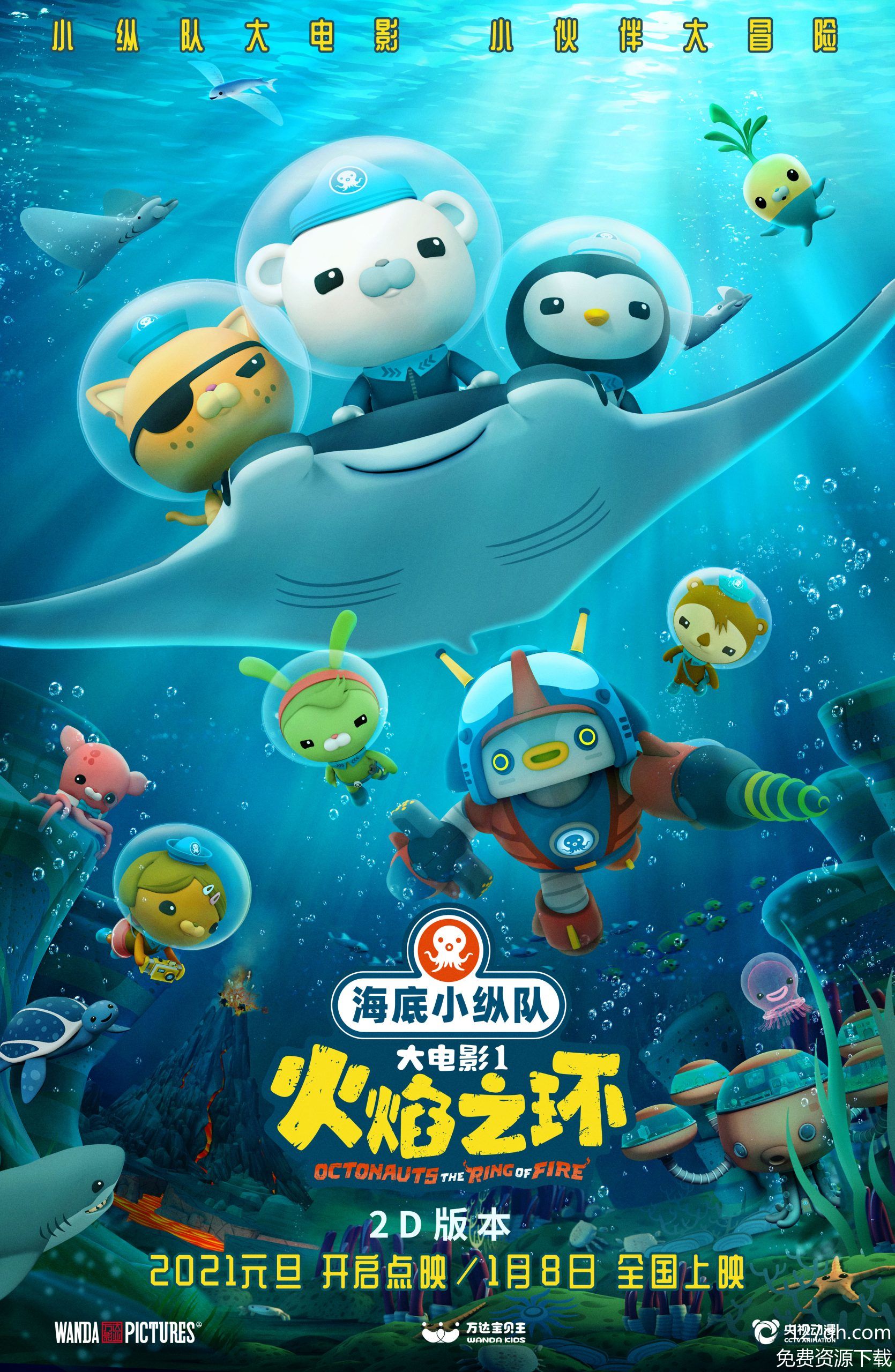 作为《海底小纵队》系列的经典剧场版,这部作品延续了团队的冒险内核——一群以巴克队长(北极熊)、呱唧(橘色小猫)、皮医生(企鹅)为核心的海洋生物,驾驶着章鱼堡穿梭各大洋,一边探索未知,一边救援海洋伙伴。在《火焰之环》里,他们要前往一片环绕活跃海底火山群的特殊海域:这里岩浆涌动形成“火焰环带”,近期火山异常活动不仅威胁珊瑚礁生物,还让一座古老海底遗迹陷入危机。