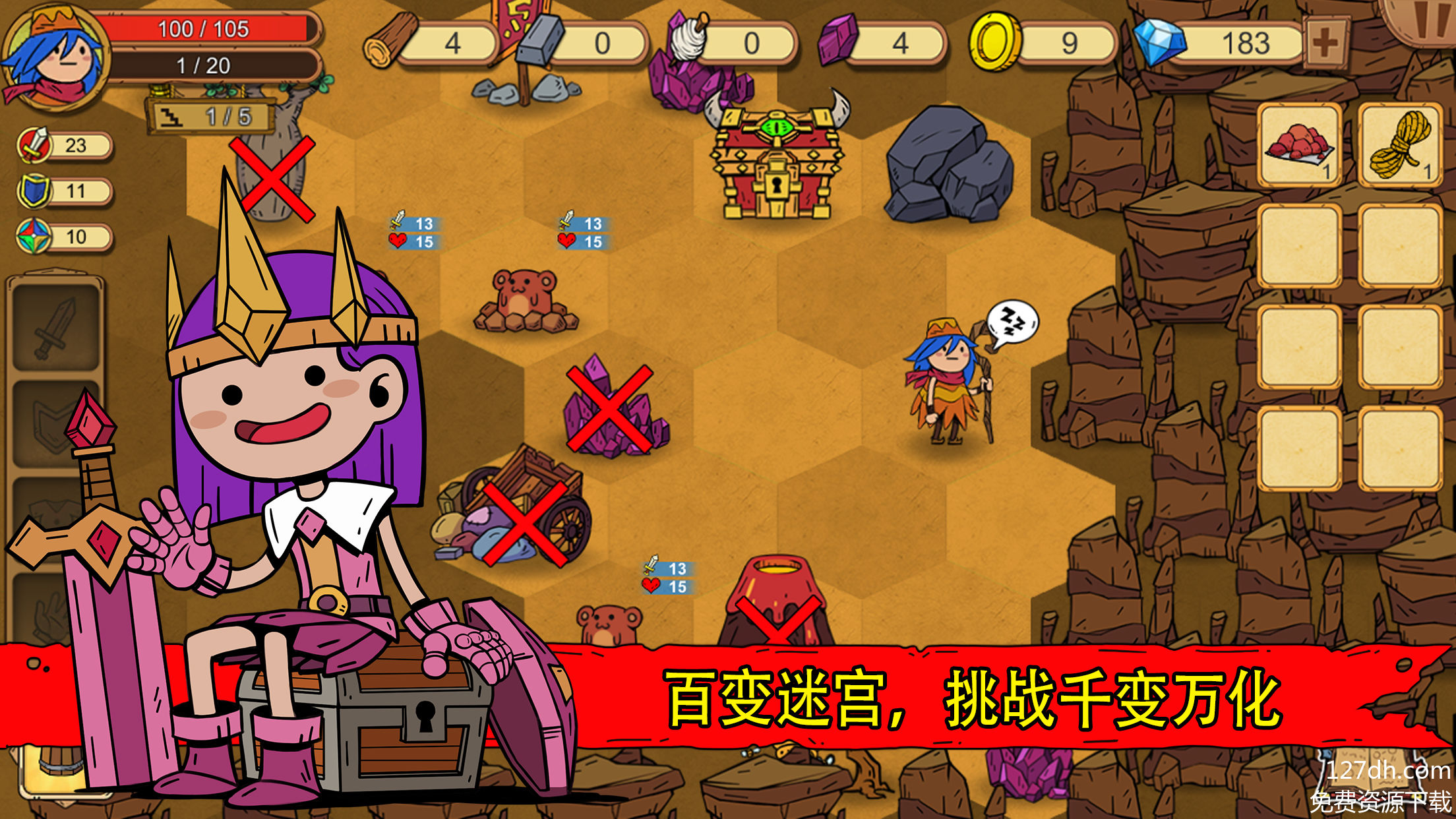 除主线外,支线任务藏满笑点:帮村姑找鸡,和酒鬼拼酒赢奖励,互动剧情让冒险不单调。Boss战更是亮点——巨型史莱姆弱点在头顶,熔岩巨人怕水攻,搭配武器技能就能花式虐Boss!