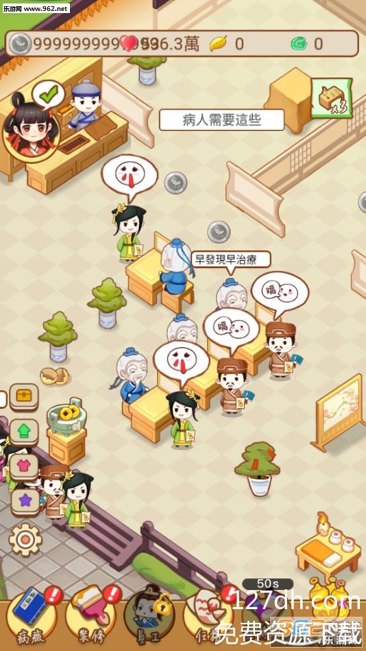 可经营路上总被资源束缚?无限货币加持让你摆脱烦恼!不用熬夜肝任务攒铜钱,不用纠结氪金买药材——千年人参、天山雪莲随意采购,顶级名医轻松雇佣,医馆从简陋小屋升级为雕梁画栋的药庄只需一键操作!