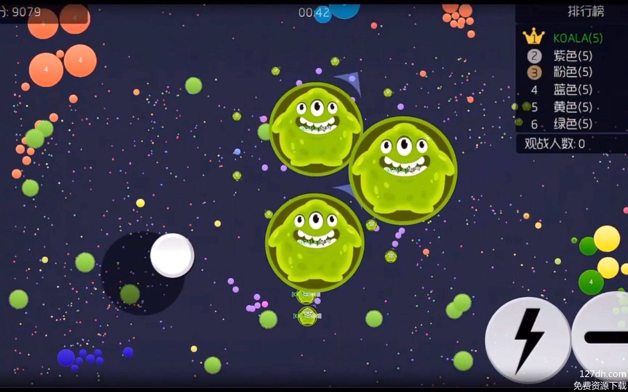 玩家操控一颗小球,在地图里吞噬比自己小的球、孢子或其他玩家,不断壮大体积。但体积越大越笨拙,稍不注意就会被更大的球盯上!分裂、吐孢子是核心技巧:分裂能快速吞噬分散小球,吐孢子可帮队友成长或迷惑对手,策略性拉满!